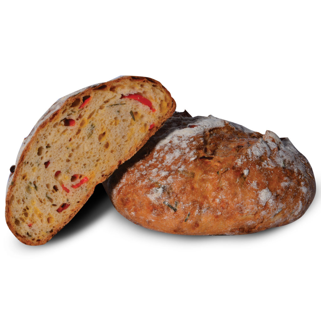 Když by vás tradiční chleby trochu nudili, ochutnejte náš nový pšeničný chléb s chilli papričkami. Pečeme ho z pšeničné mouky, zaděláváme žitným kváskem a pro zjemnění přidáváme cheddar. Nejlepší je jen tak, namazaný dobrým máslem. Když budete u testování, zkuste třeba ořechový nebo francouzský venkovský chléb.